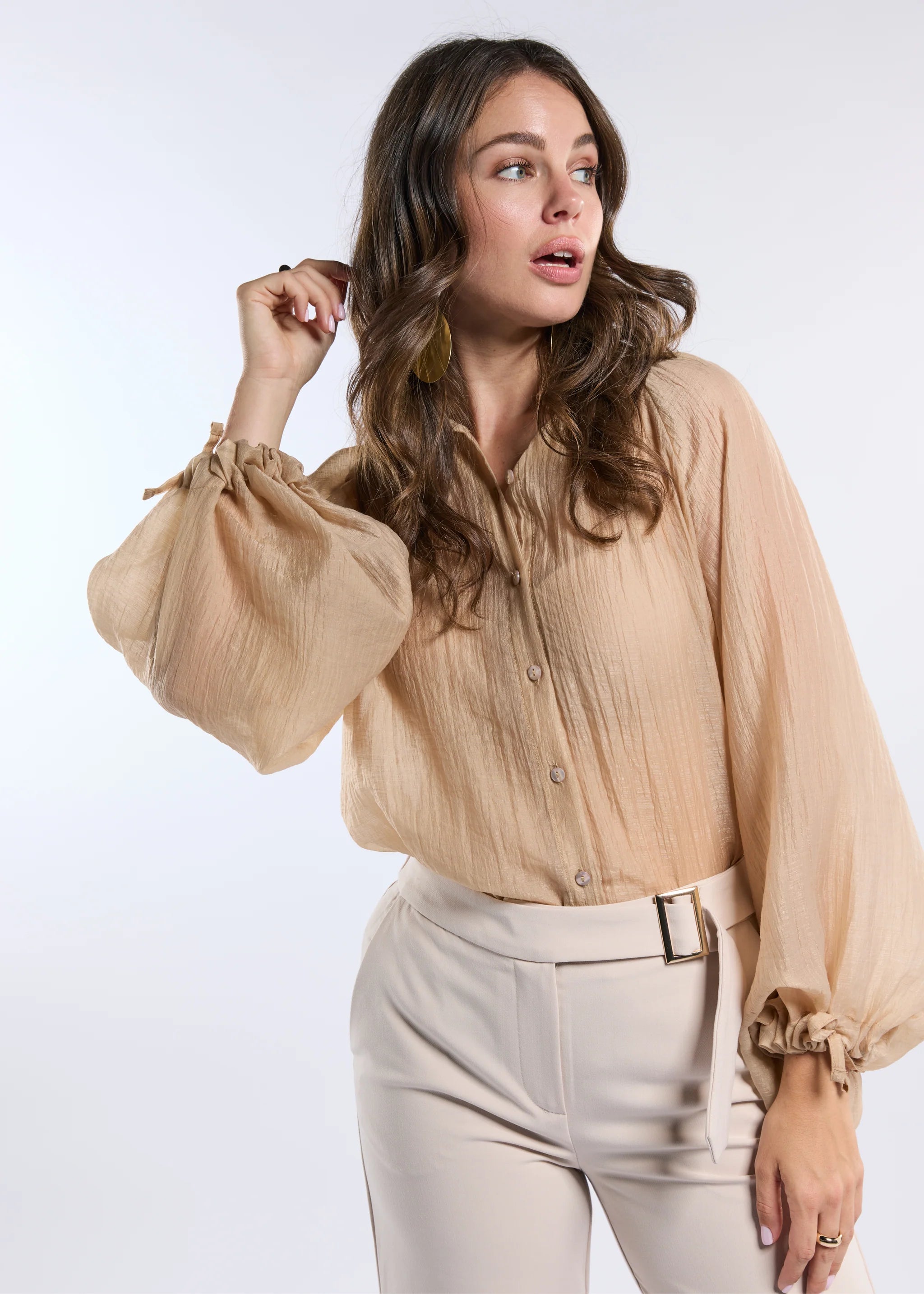 Deze blouse is gemaakt van een soft woven lyocell kwaliteit, waardoor het ontwerp licht, soepel en comfortabel aanvoelt. De volumineuze mouwen geven de blouse een zachte, vrouwelijke vorm, terwijl het strikdetail op de mouw zorgt voor een subtiel, speels accent. De camel tint maakt dit item perfect voor zowel alledaagse looks als meer geklede styling.