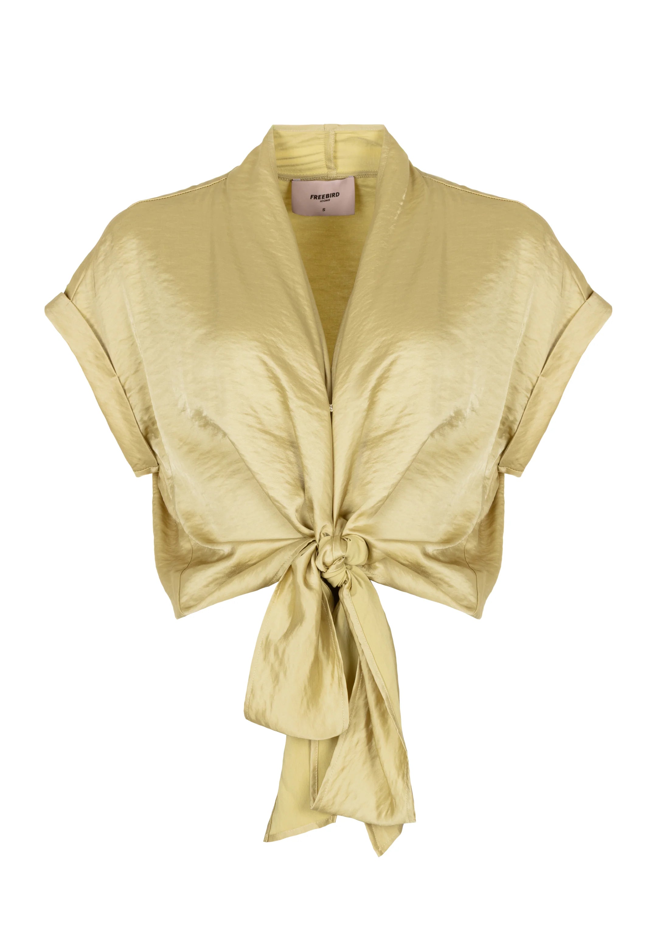 Deze elegante overslag top is uitgevoerd in een soepel geweven satijnkwaliteit met een subtiele glans. Het vrouwelijke overslagdesign wordt geaccentueerd door een strikdetail dat zowel aan de voor- als achterzijde gedragen kan worden, waardoor je eenvoudig kunt variëren in look. Een stijlvol item dat moeiteloos te combineren is voor zowel een chique als casual outfit.